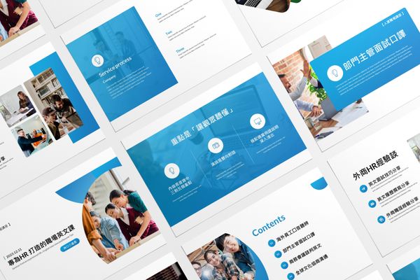簡報主題為「專為HR打造的職場英文課」,以展示富有情感的照片提升簡報吸引力,讓觀眾有實際運用的場景想像,因此能更加投入簡報內容。