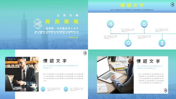 商務簡報中透過不同的文字顏色、字體大小以及圖片、圖像等元素,打造視覺層次豐富的簡報設計。