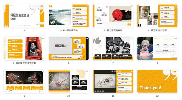 設計分析簡報設計透過統一的色調與乾淨的排版,達到吸引目光的效果,並讓觀眾更容易理解簡報內容。