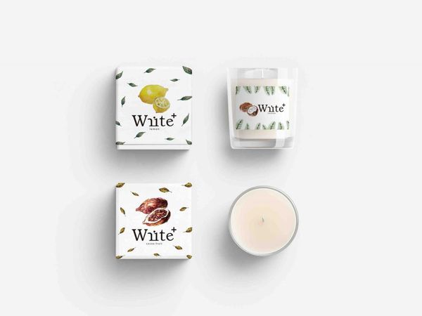 香氛蠟燭結合插畫與白色盒體,打造溫暖療癒的視覺效果,適合家居氛圍的產品包裝。