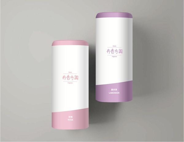 香氛罐包裝設計以粉色與紫色為主色調,傳遞清新與柔美的氛圍,是生活類產品包裝盒的理想選擇。