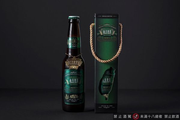 台灣啤酒採用品牌的綠色與金色結合,呈現低調奢華的配色設計,除了提升品牌辨識度,包裝上的領土形狀也展示台灣的特色。