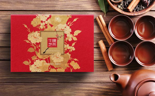 茶葉禮盒設計以紅色與金色搭配展現經典中式美學,將傳統文化融入現代包裝,提升產品的文化價值。