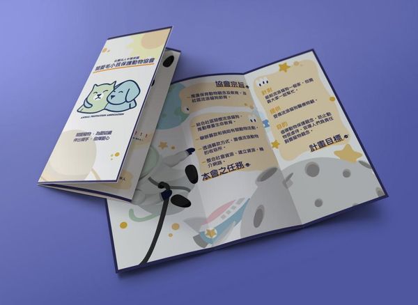 動物保護協會的宣傳摺頁運用大量可愛的插圖,吸引各年齡層的受眾特別是年輕人和小孩。設計風格活潑輕鬆,旨在傳達保護動物的重要性,摺頁內容中詳細描述了協會的使命和具體活動,並透過圖片和簡單的標語傳遞保護動物的理念,讓更多人願意參與動物保護的行動。