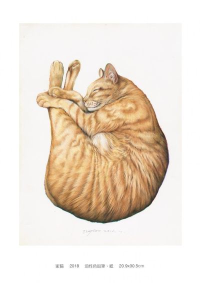 展現了一隻蜷縮成舒適姿勢的貓咪,這幅插畫使用油性色鉛筆精細描繪出貓咪的每一處毛髮,使得貓咪看起來栩栩如生。藝術家不僅捕捉到了貓咪的外貌,更將其舒適自在的姿態展現得淋漓盡致,讓觀者能感受到那種溫暖與寧靜。寫實插畫在這幅作品中展現出來的精細程度讓人驚嘆,貓咪的毛髮紋理與陰影效果營造出一種真實感與立體感,讓這幅畫作彷彿一張照片般栩栩如生。