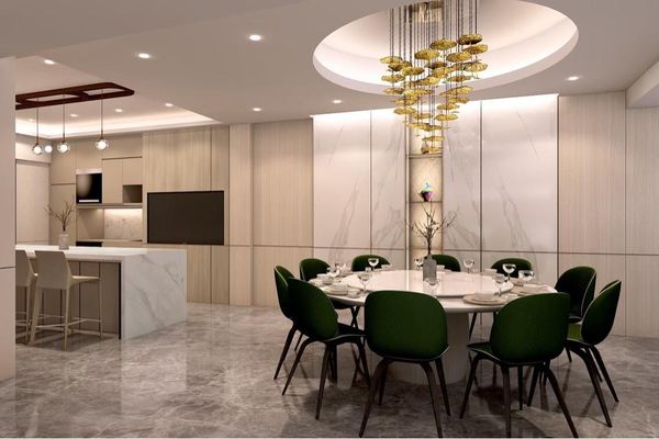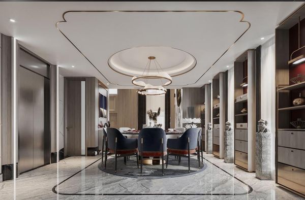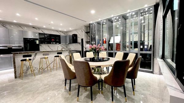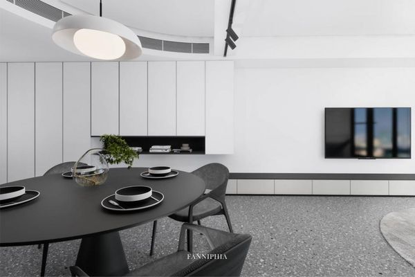 開放式的現代化餐廳設計能有效提升家庭的整體格調,並且讓用餐過程變得更加自由愜意,使整體環境更顯寬敞大氣。同時,也能更好地融入現代家具和裝飾,營造出一個充滿現代感的用餐空間。