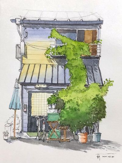 ▲這幅作品展示了自然和建築結合的美感,適合練習明暗對比與結構描繪。