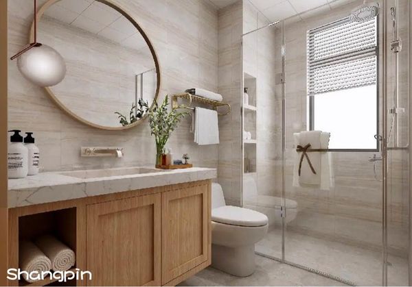 對於小浴室而言,選擇輕便小巧的洗手台和馬桶尤為重要。這不僅能節省空間,還能讓浴室顯得更為整潔和有條理。此外,壁掛式馬桶和懸浮式洗手台也是小空間中常見的選擇,這樣的設計能夠讓地面空間更加通透,便於清潔,同時也能減少視覺上的擁擠感。選擇輕巧的設施不僅在實際使用中更加靈活,也能提高整個空間的使用效率。
