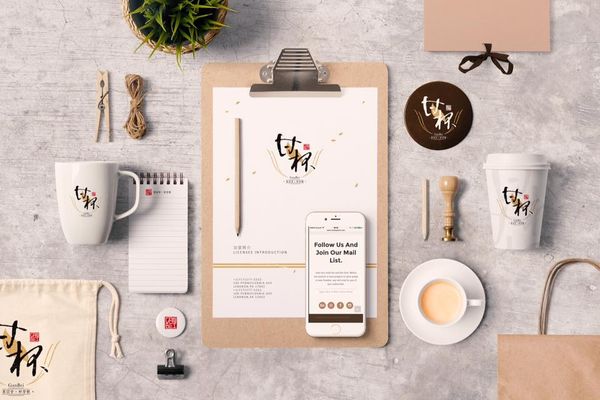 甘杯品牌的企業識別中包含文具組、杯子、紙膠帶等日常辦公用品,包裝風格自然舒適,能在日常工作中不斷強化受贈者對品牌的印象,達到長期的品牌推廣效果。