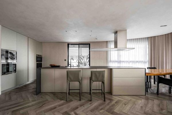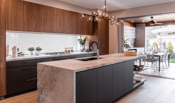木質材料可以讓廚房看起來更加溫暖和自然,並且帶來一種親近大自然的感覺;石材則具有堅固耐用的特性,不僅實用,而且能夠增加空間的質感。這些材料的結合不僅讓廚房更具視覺吸引力,還能營造出一個溫馨而放鬆的環境,讓家人和朋友更願意在這裡停留,促進更多的互動和交流。