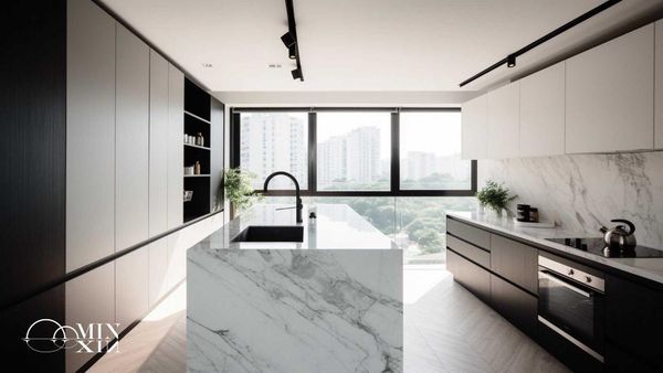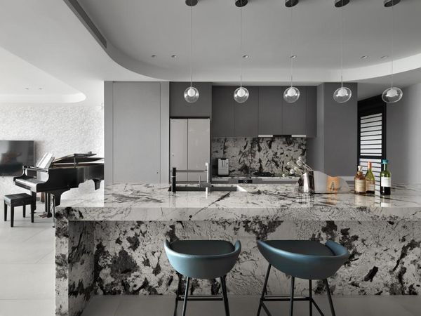 若想要提升廚房的高級感,您可以在中島或檯面上使用大理石。大理石的自然紋理給人一種獨特的美感,並且每塊石材都是獨一無二的,不僅能提升廚房的整體質感,還能讓空間顯得更具設計感。