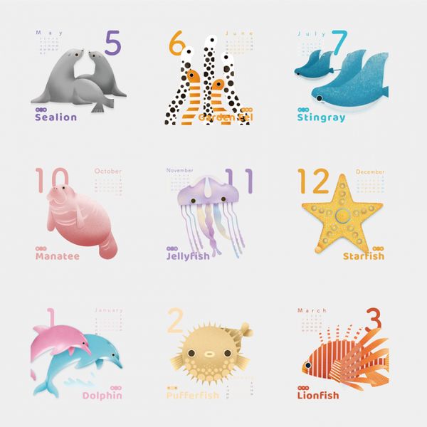 海洋動物貼圖以每個月代表一種海洋生物,從海獅到水母,每個貼圖都呈現出不同的趣味性。這些貼圖可以在季節性活動或月曆設計中使用,給用戶帶來更多的驚喜和趣味,特別是在群組聊天中,可以成為話題的引子,增強互動。