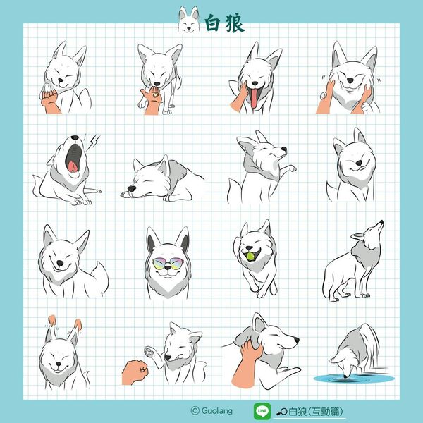 白狼互動系列貼圖展示白狼與人類之間的溫暖互動,包含握手、舔手和閉眼微笑等動作,充滿親切感。這些貼圖圖片非常適合作為親密互動的表情符號,能讓使用者在聊天中更好地傳達溫馨情感,增強彼此之間的聯繫。