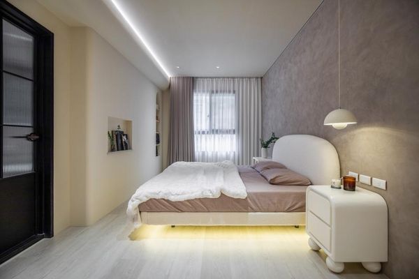 燈光設計在懸浮床的應用中扮演了關鍵角色。透過使用間接燈光,如床底燈帶或洗牆燈,營造出層次分明的光影效果,不僅突顯懸浮設計的獨特性,還能提升臥室的溫馨氛圍。