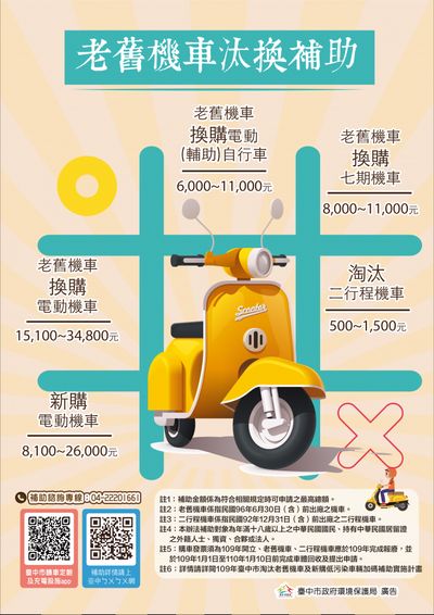 老舊機車汰換補助的宣傳單以簡單明瞭的設計風格,使受眾可以快速理解補助的內容。活潑的色彩搭配讓整體設計顯得輕鬆有趣,有助於傳遞政府補助的正面訊息,吸引更多人參與汰換計畫。