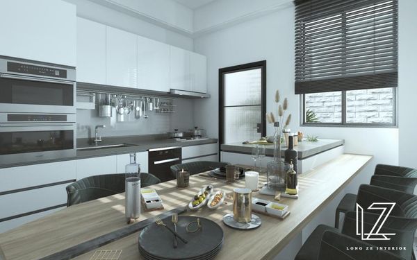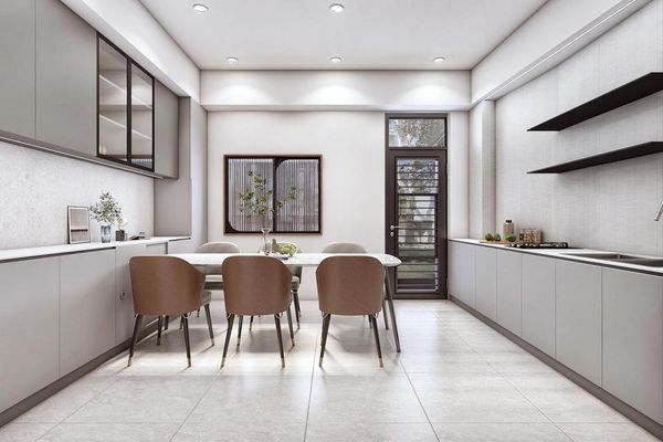 吊櫃是擴展垂直收納空間的絕佳選擇,將吊櫃設計到天花板的高度,可以有效地增加收納容量,同時避免物品堆積於工作檯面,讓整體空間看起來更為整潔和井然有序。另外,開放式置物架也是一個靈活的選擇,不僅增加儲物區,還能成為廚房中的一個裝飾元素,擺放常用的調味品、杯子或裝飾物,讓空間既實用又美觀。同時,開放式設計還便於快速取用物品,提升日常操作的效率和便利性。