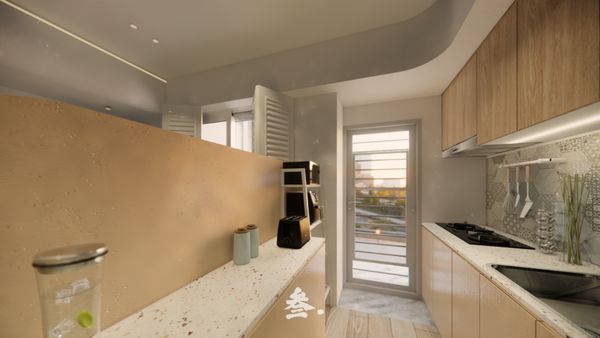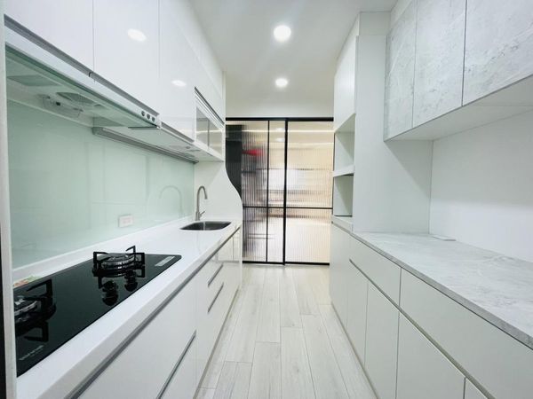 二字型廚房的縱深部分往往容易被忽略,建議選擇深度適中的櫥櫃,讓物品擺放更有條理,減少物品找不到或取用困難的情況。同時,對於廚房的角落空間,可以考慮使用轉盤或角落收納架,讓每一寸空間都得到充分利用,特別是在有限的空間中,這樣的設計能夠帶來更多的收納可能性,不僅方便使用,還能有效減少空間浪費,讓廚房更加井然有序和方便實用。