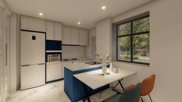 多功能櫃體是小戶型廚房的好幫手,它不僅可以提供足夠的收納空間,還能靈活變化,適應不同的需求。例如,櫃體與吧檯的結合設計,不僅能提供料理備品的儲物空間或是作為電器櫃,還讓廚房成為一個多功能空間,可以是臨時的備料台或用餐區,甚至可以成為孩子的學習空間或是家庭交流的角落。隱藏式折疊桌也是一個巧妙的設計,當不需要使用時可以收起來,節省空間,使用時則可提供額外的工作檯面,讓料理動線更順暢,有效提升烹飪效率。這些多功能櫃體設計為二字型廚房增加了靈活性和實用性,使其能夠應對多變的家庭需求。