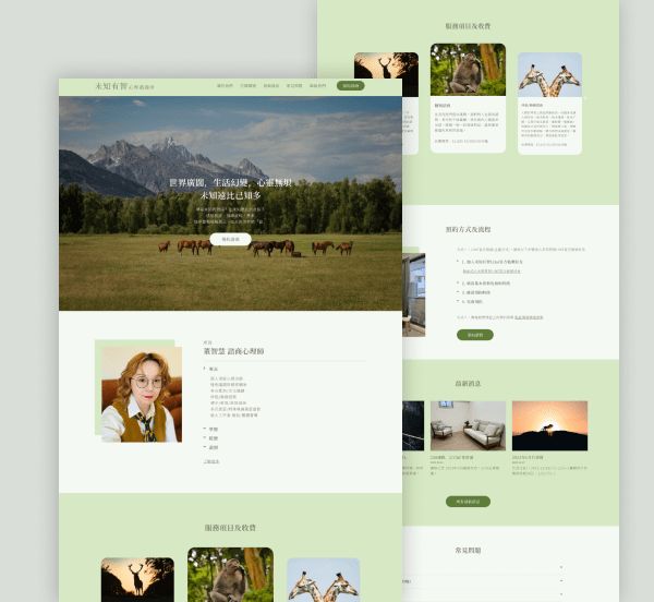 心理諮商所的官網設計注重舒適與信任感的營造,整個網站採用了柔和的色調,並搭配了自然景觀和治療師的照片,讓訪客感受到溫暖和安心。網站的佈局簡潔明瞭,提供了諮商服務介紹、治療師資訊以及預約功能,讓用戶可以輕鬆地找到所需的資訊並快速進行預約。這樣的設計有助於打破用戶對心理諮詢的距離感,提升了服務的可及性和信任度。
