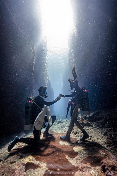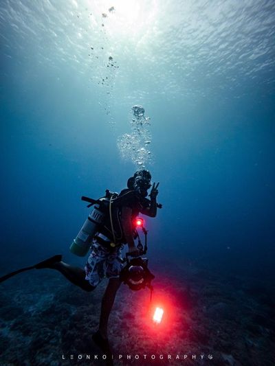 如果拍攝對象是其他潛水者,事先的溝通和配合能幫助您捕捉到最佳的畫面。比如,約定好手勢來進行溝通,這樣可以在水下更好地協調動作。從多個角度嘗試,捕捉潛水者的動作和表情,讓照片更有故事性。