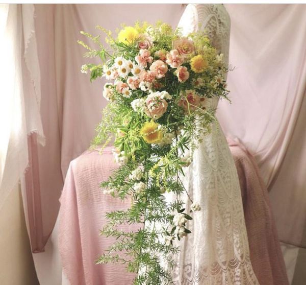 田園風格的婚禮通常會選擇自然清新的花材,如:野花、滿天星,再搭配垂墜式的綠葉,給人一種自然隨性的感覺。這樣的設計不僅能夠增添田園婚禮的自然氛圍,還能讓捧花看起來更加豐富立體。田園風格的婚禮強調的是大自然的美感,因此選擇的花材應該盡量保持原始的自然感。