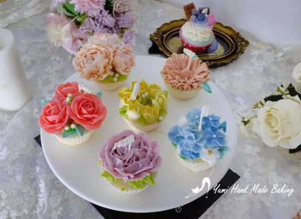 花卉造型的杯子蛋糕是一種既美味又賞心悅目的婚禮甜點選擇。下圖展示了多種顏色的花朵裝飾,每個杯子蛋糕都宛如一束迷你的花束,讓甜點桌成為婚禮的焦點。新人們可以將這些杯子蛋糕擺成花園般的佈置,讓賓客彷彿置身於甜美花園中,增添浪漫氛圍,這些花卉造型的蛋糕品項不僅僅是視覺上的享受,更是一種對浪漫愛情的致敬,為整場婚禮增添別具一格的細節。
