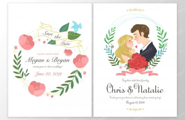 自然質樸的手繪線條風格以簡約的筆觸描繪新人,帶有一種清新而樸實的感覺,這種風格的邀請卡傳達了婚禮的簡約之美,適合崇尚極簡風的新人。