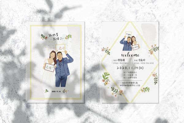 10款手繪喜帖範例,似顏繪客製化喜帖參考