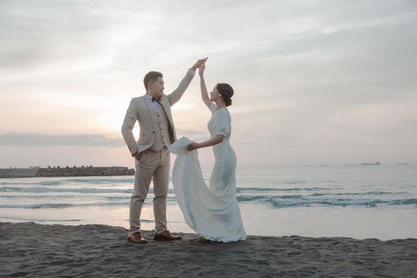 日落時分的光線柔和,適合用來強調新人的身形,建議選擇自然的舞姿來捕捉動感。夕陽的光線不僅可以增加照片的溫暖感,還能讓畫面更加柔和與迷人,建議多利用這一時刻的自然光,營造出自然浪漫的婚紗照風格。