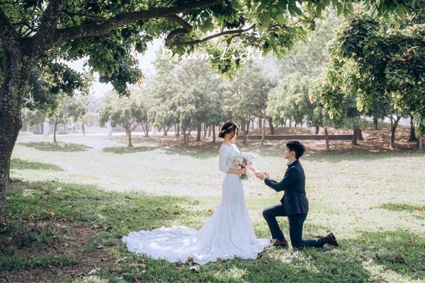 拍攝時選擇合適的角度,既能看到新郎的動作,又能捕捉到新娘的表情,這樣能夠更好地表現出這一瞬間的情感。建議選擇一個具有特殊意義的地點進行求婚姿勢拍攝,讓這一瞬間更加具有故事性和回憶價值。