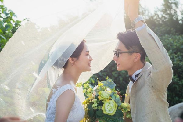 使用輕薄的面紗來覆蓋新人,可以增加照片的層次感與神秘感,建議利用自然光來柔化新人的表情,拍攝時讓面紗在光線下輕輕飄動,增加照片的動感與層次感。