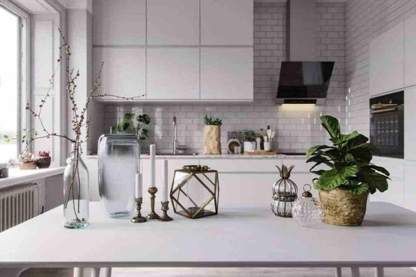 如果希望增加空間中的視覺焦點,考慮加入一些對比色的小物件,例如:銅色或皮革物品…等點綴白色廚房。例如:靠墊、廚房小器具或裝飾品,這樣可以讓空間顯得更生動,且不影響白色廚房的整體簡約感。除了靠墊和小物件,還可以考慮使用對比色或顏色鮮明的座椅與廚房家電迅速吸引視線,讓廚房空間更具層次感和設計感。