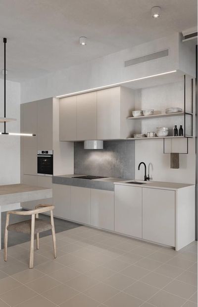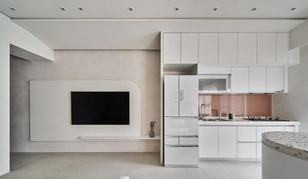 白色廚房不必全是單一色調,可以透過適當的顏色搭配,讓整體空間更加有層次感,您可以使用米色、淺灰或柔黃等柔和的中性色,不僅能夠平衡白色的冷調,還可以增添層次感並使空間看起來更加溫暖。