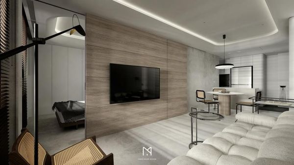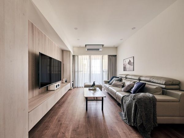 淺木色的木紋電視牆可以讓小空間顯得更為明亮寬敞。淺木色在視覺上能讓空間顯得更加開闊,同時也讓整體居家風格顯得簡潔大方。這種色調的選擇能帶來一種清新而溫馨的視覺體驗,使得客廳顯得更加宜人。淺木色的木紋不僅適合小空間,也能有效地反射自然光,使得空間在日間顯得更加明亮且充滿活力。此外,這樣的木紋設計還能與不同材質的家具如布藝沙發、金屬配件等和諧搭配,進一步提升整體空間的協調性和層次感。