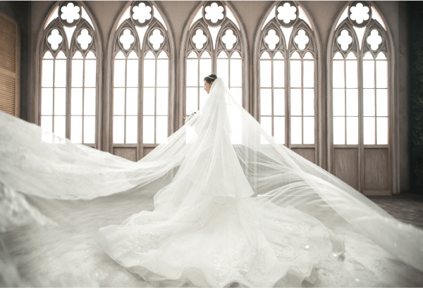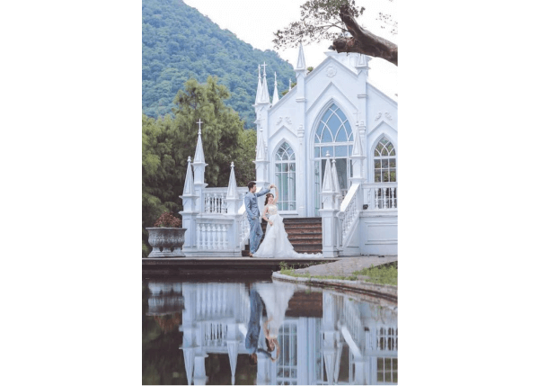 童話宮廷風婚紗照夢幻又華麗,以繁複的裙襬設計營造手工婚紗的蓬鬆和精緻感,再以皇冠飾品打造新娘的公主風形象,搭配上城堡、教堂等的歐式佈景,使婚紗照呈現童話般的故事感。