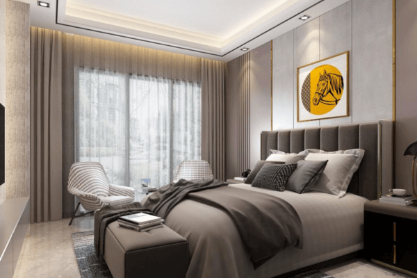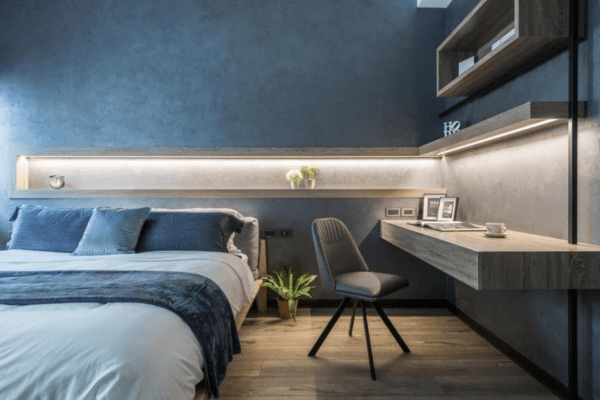 牆面顏色應與傢俱形成層次感,避免全部使用相同色系造成壓迫。若牆面為大地色,可搭配木質與白色傢俱;牆面偏白,則可以淺黃、綠色或金色的金屬質感傢俱增加暖度並提升視覺美感。妥善規劃房間配色能在視覺上穩定情緒,也能創造柔和的正能量。