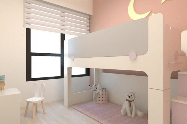 兒童房的主色應考慮孩子的年齡和性格,並選擇淺藍色、淡綠色、粉色...等柔和顏色,以促進孩子的身心發展,除了油漆選色,還可透過壁貼、玩具收納盒...等小物件加入活潑的色彩元素,但要避免過於刺激的螢光色或過深的顏色。