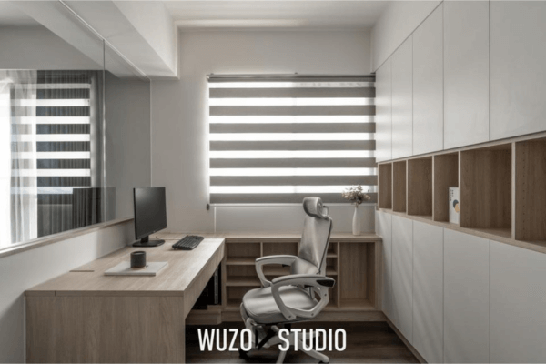 書房需要寧靜專注的氛圍,可以使用淺綠、淡綠、米白...等有助於思考並提升專注力的顏色;更衣間則可以選擇高雅的灰色調,搭配適當的照明,便可以創造舒適的換裝空間。
