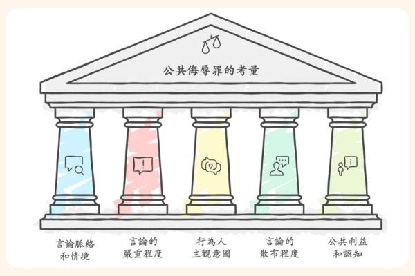 如果言論涉及公共事務的討論,或具有公益性目的,法官可能會認為言論自由應優先於名譽權,而判決不構成公然侮辱罪,例如:評論政治人物或公共政策時,即使使用較尖銳的詞語,也可能被認定為是對公共事務的合理評論。