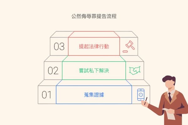 以下為您整理公然侮辱罪的提告流程,幫助您在遭受侮辱時,透過訴訟維護自身名譽: