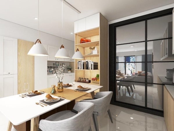 半開放式廚房會拆除廚房與其他空間的隔間牆,或改用玻璃隔間、玻璃拉門…等方式,使客廳、廚房與餐廳…等公共空間更顯寬敞明亮。