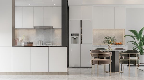 半開放式廚房會保留部分隔間牆或使用玻璃隔間,能有效阻隔烹飪時的噪音傳入客廳或餐廳。
