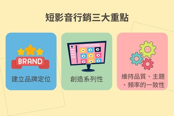 在進行短影音行銷的同時,也必須注意維持「品質、主題、頻率」的一致性:
