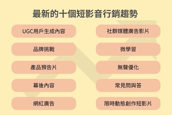 短影音雖然在行銷領域發展時間不長,但已經具有許多品牌不可忽視的影響力,許多品牌、創作者也都因應潮流加入了短影音行銷的行列,但短影音應該麼做?要如何納入行銷規劃之中?PRO360達人網為您整理了10個短影音行銷趨勢,包含:UGC用戶生成內容、品牌挑戰、產品預告片、幕後內容、網紅廣告、社群媒體廣告影片、微學習、無聲優化、常見問與答,以及限時動態創作短影片,幫助您了解該如何規劃短影音行銷。