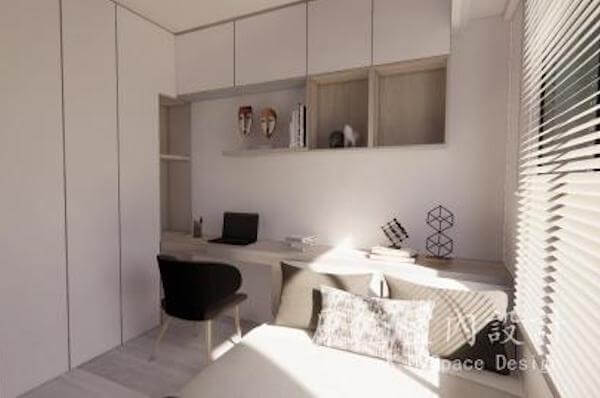 如果小坪數空間除了臥室機能外還有其他的空間用途,例如:作為書房或居家的運動空間等,此時若擺放無法輕易移動的床鋪將限縮空間的使用彈性與方便性,因此可以在進行小坪數臥室設計時運用隱藏式床具,平時將床舖垂直收納,充分運用多出來的的空間,需要休息時再將床板放下,讓空間運用更加靈活有彈性。