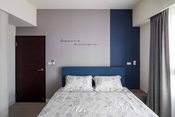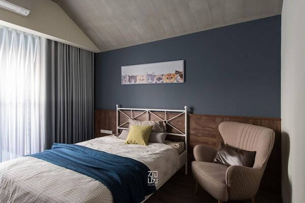 除了櫃體沿著牆面擺放,床鋪也可以將床頭及其中一側緊靠牆面,使臥室中心空出一個完整的活動空間,讓臥室動線也不會因為床鋪擺放在臥室中間而顯得狹窄零碎。