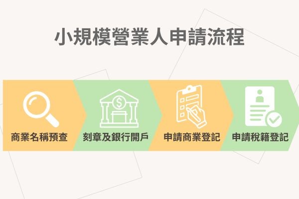 小規模營業人是指月銷售額未達20萬的營業人,必須申請商業登記與稅籍登記,以下為您介紹小規模營業人申請流程: