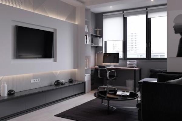 由於小坪數住家的使用面積較小,大多以一房或兩房的室內格局為主,因此在進行客廳裝潢時可以使用不同的隔間方式取代厚重的實體隔間牆,例如:使用玻璃拉門、玻璃隔間、系統櫃、屏風以及半高電視櫃…等,這些方式不僅能有效放大視覺空間,也能滿足實際的使用需求。