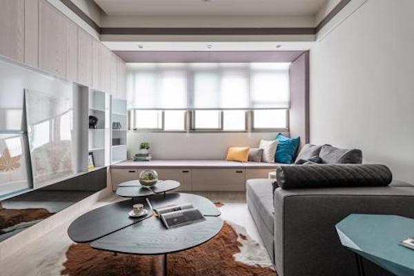 在小客廳內擺放大型的L型沙發會使客廳空間變得擁擠,此時不妨在與室內設計師討論客廳設計時,請設計師在窗邊設計多功能臥榻區,不僅可以作為休憩區與訪客的座位區,下方還可以規劃成收納空間,提升客廳的收納機能。
