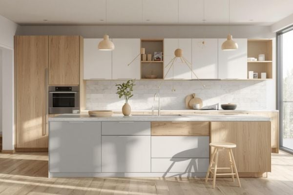 北歐風格以自然光線與舒適感為核心,追求明亮且溫馨的居家氛圍,注重簡約與自然元素的融合。系統櫃配色建議以白色或淺木色為主,木色系列的系統櫃可以為空間增添溫暖與自然氣息;白色系統櫃則可以讓北歐風空間更顯明亮。輔色建議搭配灰色或米色,能使整體配色更和諧。